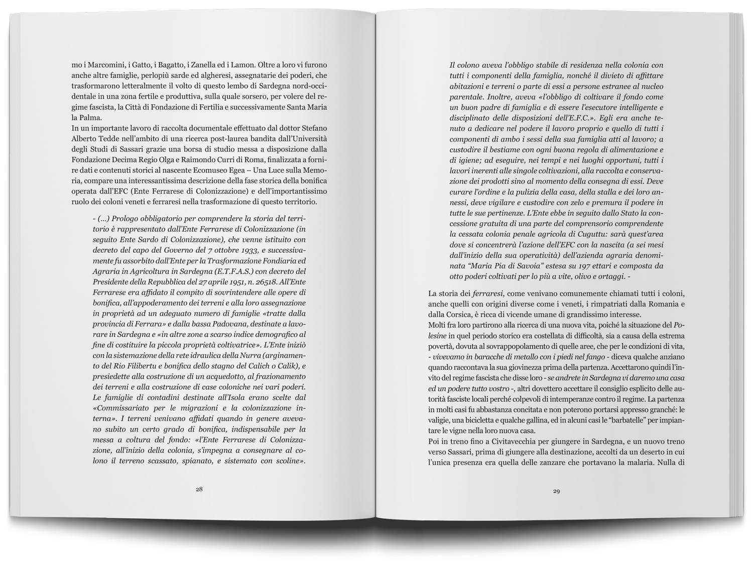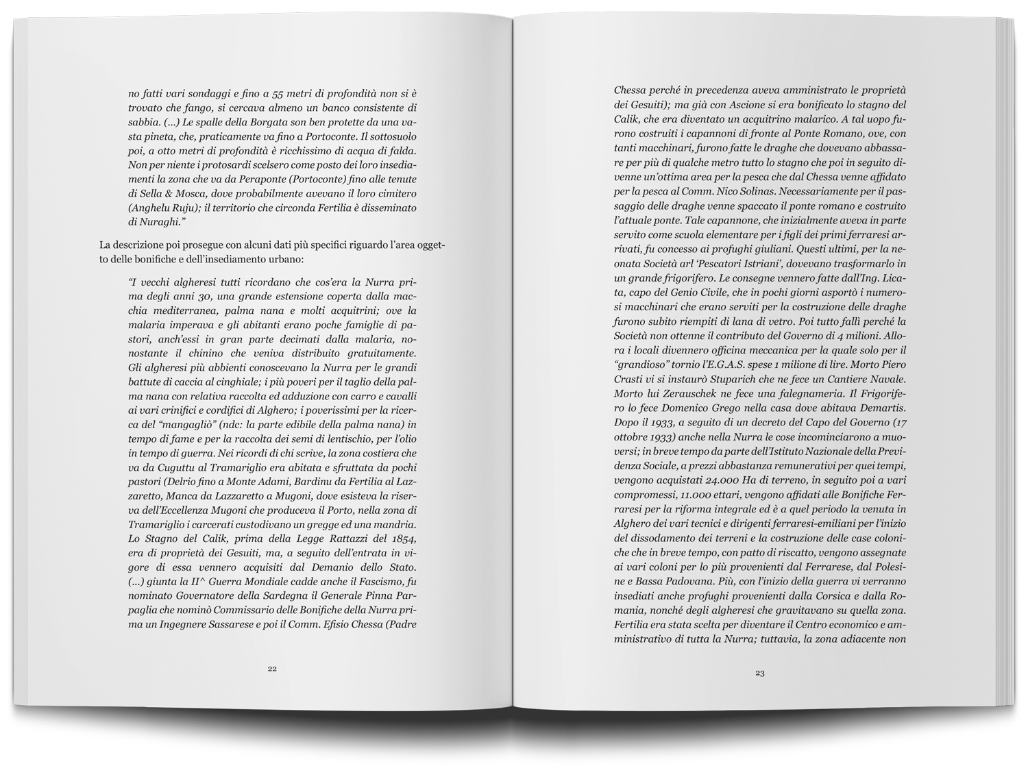 Ho deciso di raccontare Fertilia perché sono certo che pochi conoscono la vera essenza e il grande esempio valoriale della nostra comunità. Ripercorrere insieme a voi le vicende che hanno portato alla nascita di una realtà che sotto la sua apparenza semplice nasconde aspetti che denotano una ricchezza umana e una incredibile vivacità culturale, in grado di rappresentare un modello e un esempio di grande utilità per le nuove generazioni, mi è sembrato il modo migliore per far conoscere questo “auspicio” divenuto realtà.